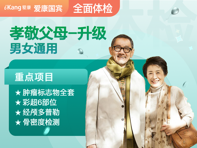| 商品名称:孝敬父母-升级 | 套餐类型:中老年全身体检 | 所属品牌:爱康国宾 |