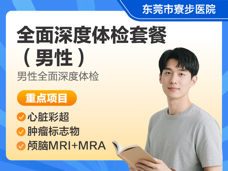 | 商品名称:全面深度体检套餐(男) | 套餐类型:全面体检 | 所属品牌:东莞市寮步医院 |