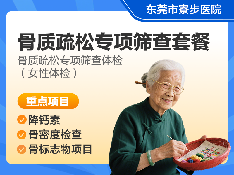 商品名称:骨质疏松专项筛查套餐(女)套餐类型:骨质疏松专项筛查所属品牌:东莞市寮步医院